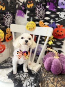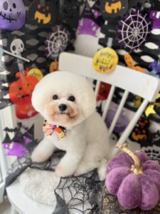 ビションフリーゼのもこちゃんです🎃 トリミングコース+ハミガキをご利用いただきました。
