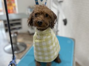 タイニープードルのレンくんです🍁 トリミングコース+セラミドパックをご利用いただきました。