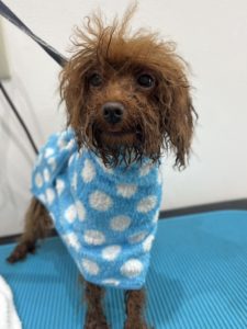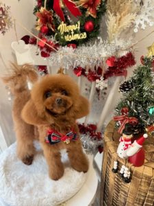 トイプードルのしゅうちゃんです🎄 トリミングコース+ホイップアロマバス+ハミガキ+皮膚ケアコースをご利用いただきました。