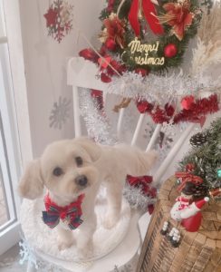 MIX犬のエムくんです🎄 トリミングコース+ハミガキをご利用いただきました。