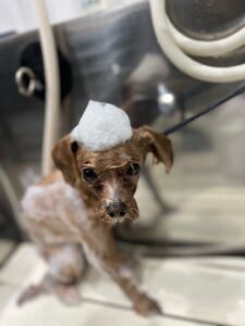 Mダックスの茶々ちゃんです🌹 トリミングコースをご利用いただきました。