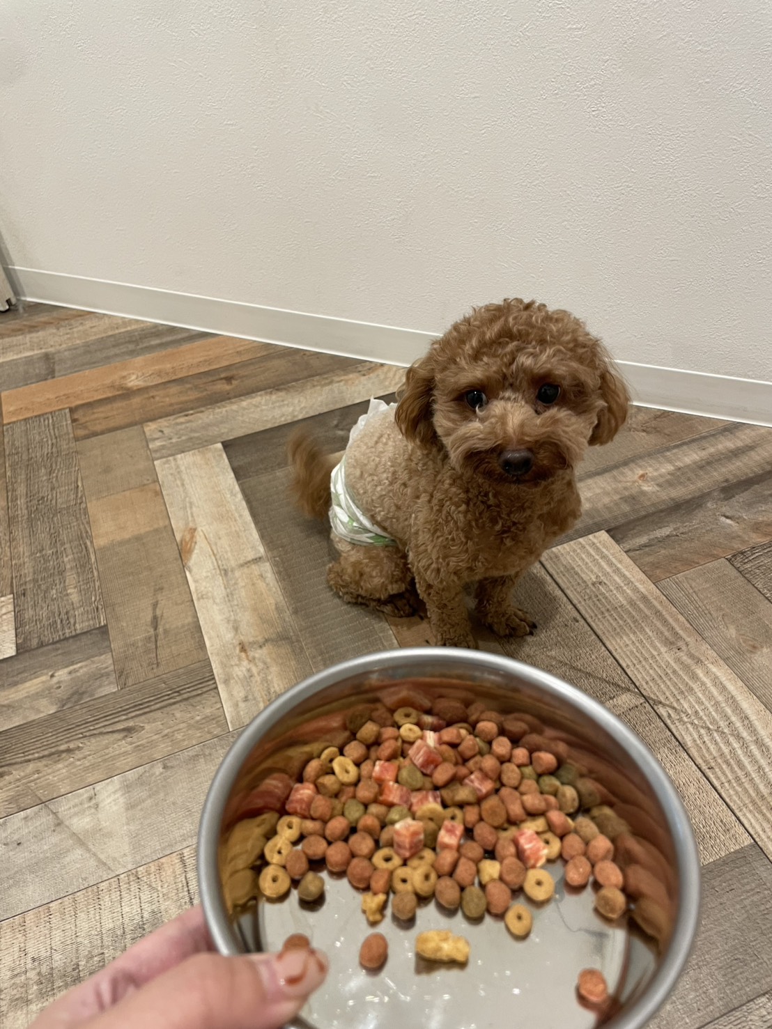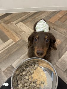 お散歩の後はご飯にしようね🍚✨ よく嚙んで食べてね😊