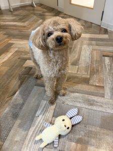 朝は室内で遊びました🐶💞 おもちゃよりもなでなでが好きなおこめくん🎶