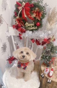 MIX犬のピノ子ちゃんです🎄 トリミングコース+ハミガキをご利用いただきました。