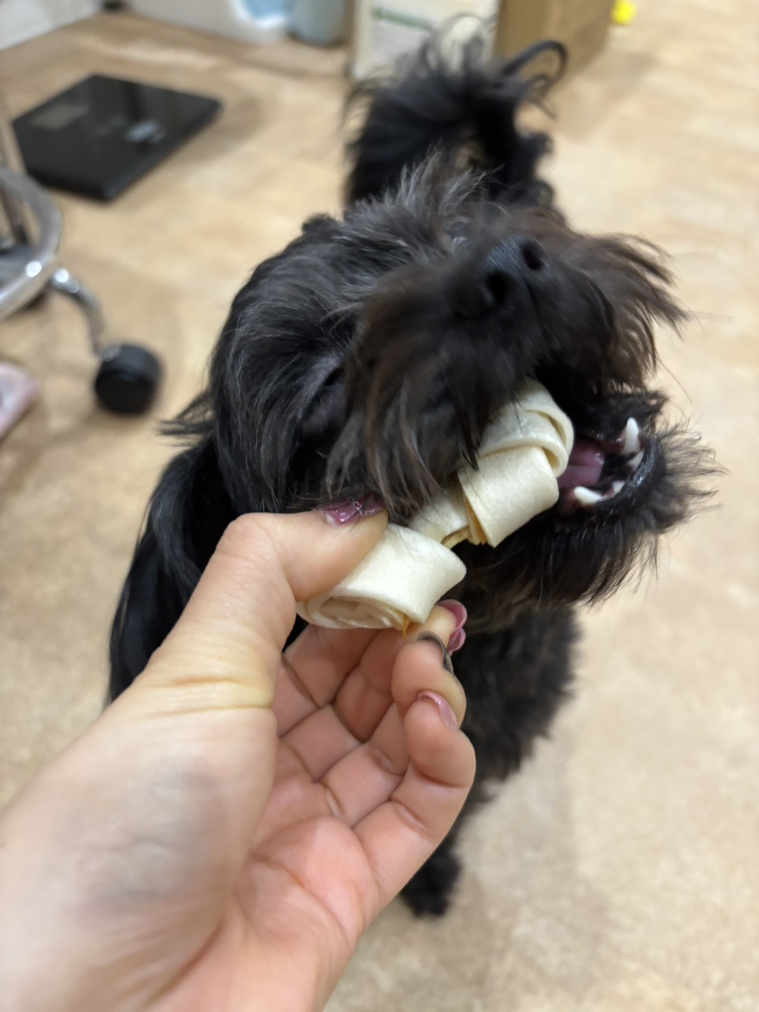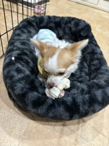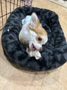 ちゃちゃくんもおやつを食べて満足そう😋 ひとりで抱えて食べていました😂