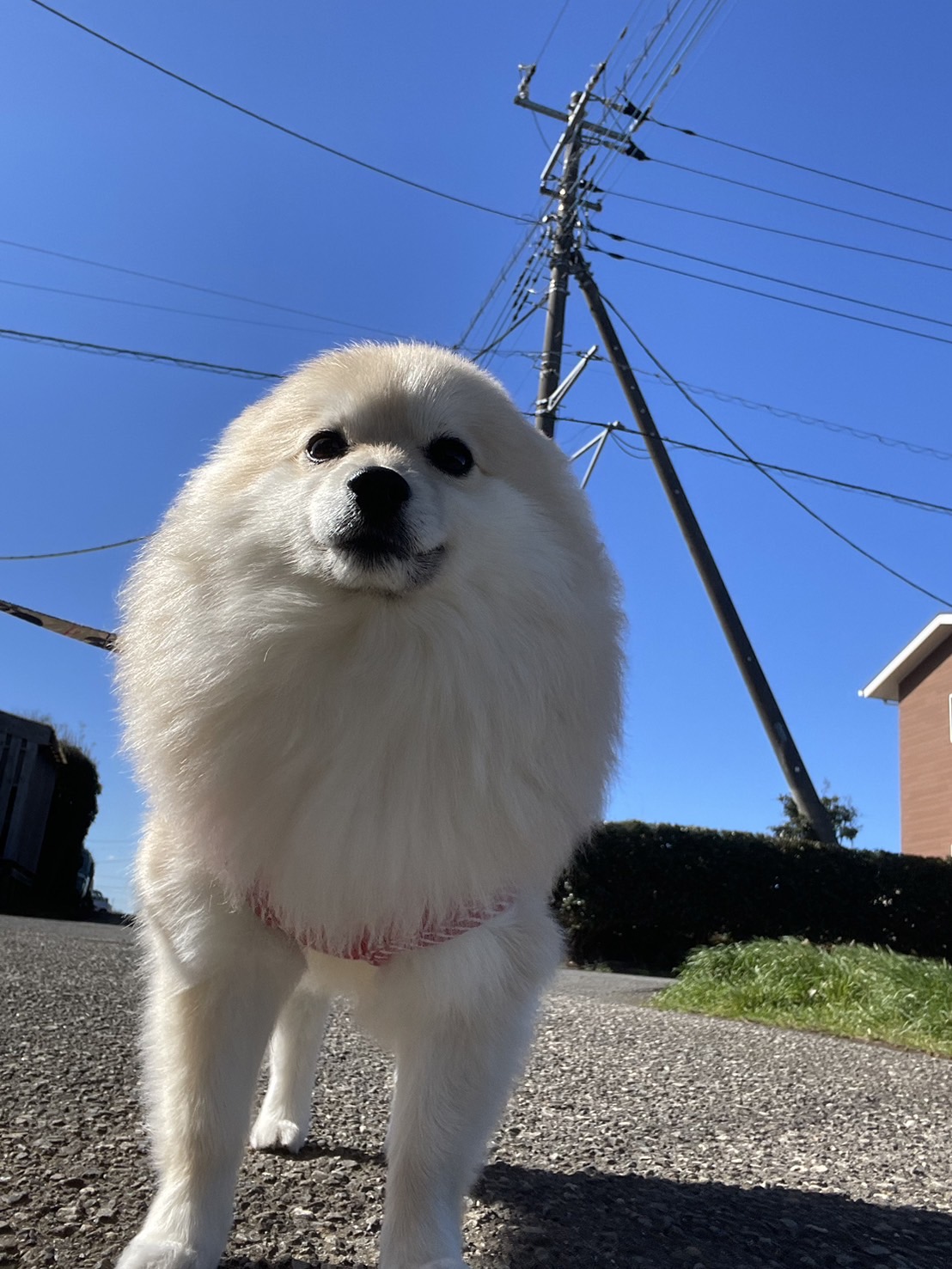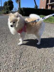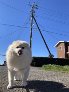 おはようモカちゃん💕 今日は朝からいいお天気だね✨ すこし風は強いけどとっても楽しくお散歩に行って来れました💮