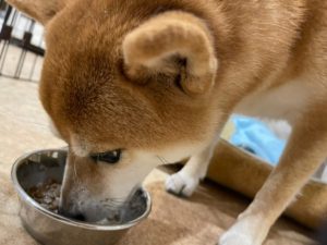 獅子丸ちゃんミルクを飲みながらご飯を食べてくれました♪ ゆっくりたべようね♡
