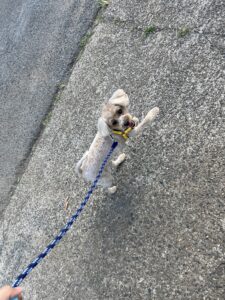 今日はルナちゃんがお泊りに来てくれました( *´艸`) みんな大好きお散歩タイムです(/・ω・)/ ルンルンで歩いてくれていました💓 楽しかったね🎶