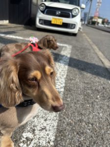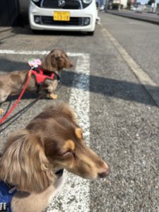 今日もみんなとっても元気にお散歩してくれました💓 テトラくんマーニーちゃんは仲良くお散歩🎶 テトラくんは車が気になるようで道路をずっと見ていました😍