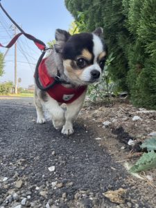 やまとくんは今日も真剣なお顔でお散歩⭐ 途中で限界になり、抱っこで戻りました☺️