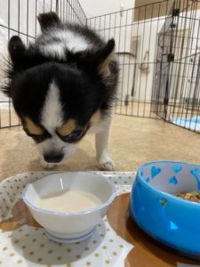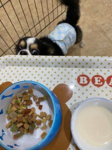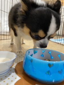 お散歩の後はごはんの時間です🍚 やまとくんしっかりミルクもご飯も食べています💗