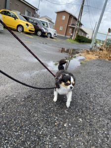 みんなおはよう🌤 今日も雨だったので、やまとくんだけお散歩に行ってきました💨 てくてくるんるん気分で歩いています🎶