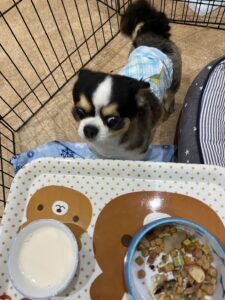 お散歩の後はご飯の時間です🍚 上手にお薬飲めました😊💕