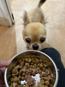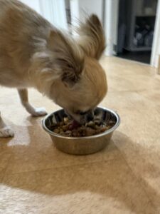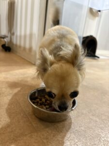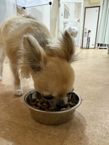お散歩の後はご飯の時間です✨ ゆっくり嚙んで食べようね💕