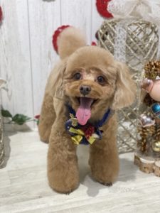 トイプードルのくぅくんです🎄🎅🍗🎀 トリミングコースをご利用いただきました。