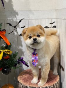 ポメラニアンのこはるくんです🎃👻🕷️ トリミングコースをご利用いただきました。