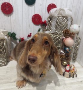 Mダックスのモカちゃんです🎄🎅🍗🎀