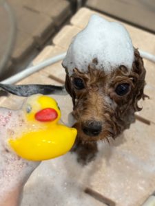 タイニープードルの凛音ちゃんです🌞🌺🏝️ トリミングコースをご利用いただきました。