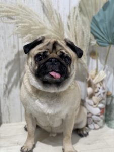 パグの大吉くんです🌞🌺🏝️ シャンプーコース+泥パックをご利用いただきました。
