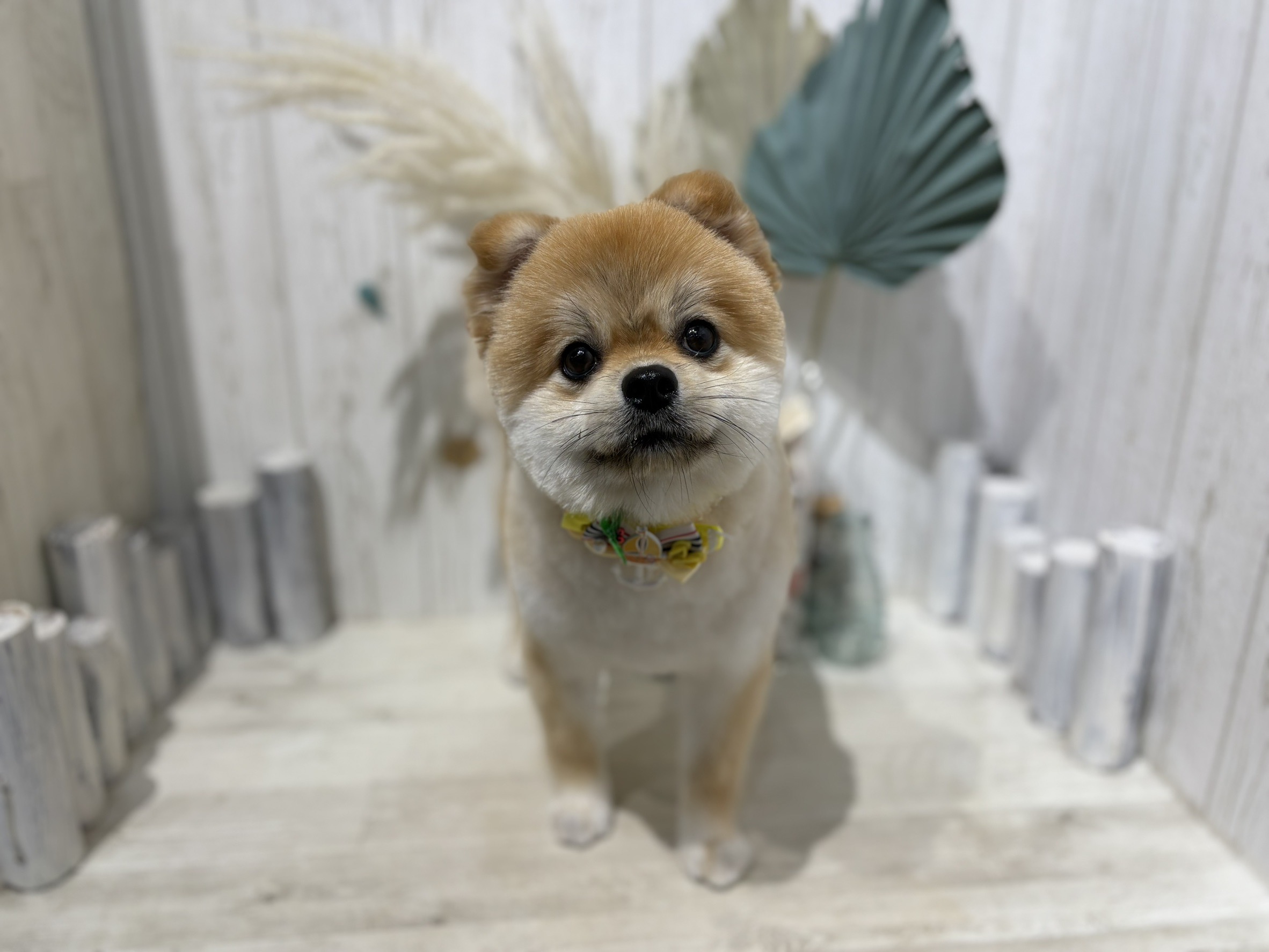 ポメラニアンのこはるくんです🌞🌺🏝️ トリミングコースをご利用いただきました。