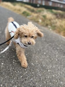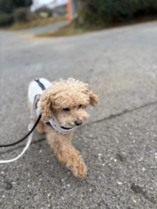 今日も朝から元気なフリくん😝 スタッフの膝の上が大好きなようです💕 お散歩も楽しそうに歩いてくれました🎶