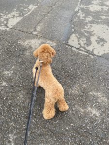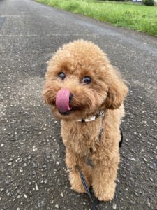 今日からお泊りのむぎちゃん😊 雨の合間を縫ってお散歩です! お外ではトイレしないで、お店に帰ってきた直後にしました(笑)