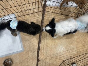 お散歩の後はご飯の時間です🍚💛 みんなよく噛んで食べてね💓 そして本日からマーレくんが来てくれました🎶 みんなと上手に挨拶してくれました💕