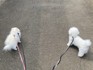 次はお散歩のじかんです! 雲が多く、日差しよけになって涼しいです😊 ごはんもばっちり食べたので、今日も夕方まで自由時間にしよう💗