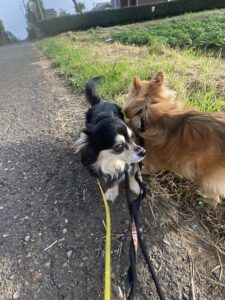 こんばんは🌟 ユキちゃん、ルーちゃん一日お利口さんに過ごしてくれていました💓 夕方のお散歩の時間です🌿今日も仲良くお散歩してきました。