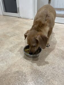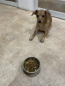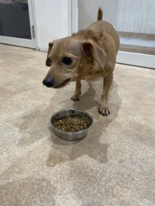 お待たせ✨ しっかりお座りして待っていてくれました( *´艸`) ゆっくりよく噛んで食べてね💕 この後もたくさん遊んで明日も元気にお散歩行こうね💎