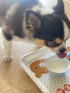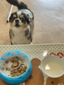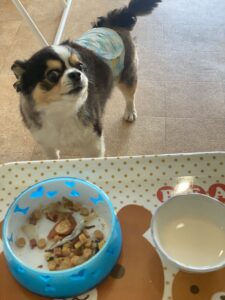 お店ではフリースペースを貸し切り✨ 楽しそうでした( *´艸`) さてご飯食べようか🍚 ゆっくりよく噛んで食べてね🌼