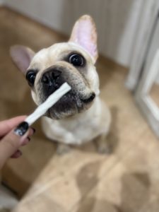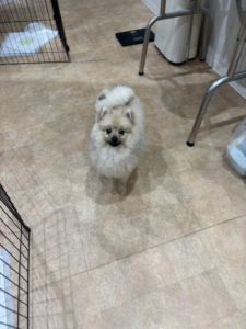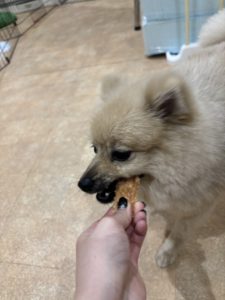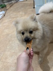 今日からおとまりのポメラニアンくんも室内で楽しんでくれています😆 おやつを食べるお顔が可愛すぎます😍