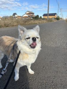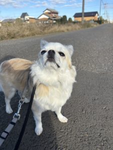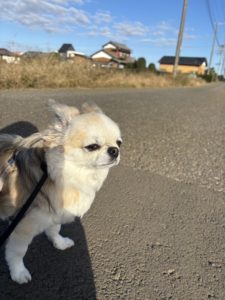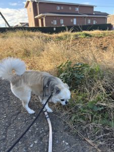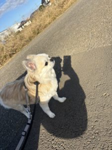 朝のお散歩のメルちゃんです💕 今日は近所のワンちゃんにたくさん会いました✨