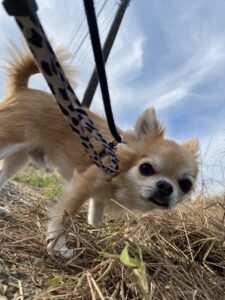 朝のお散歩の時間になりました。 2人共朝から元気いっぱいだね💕