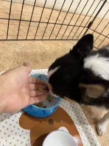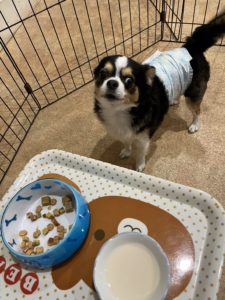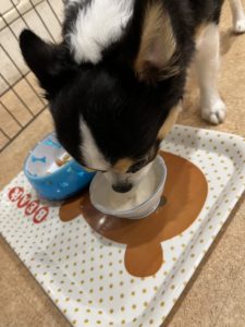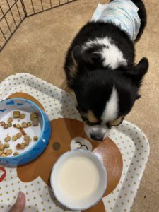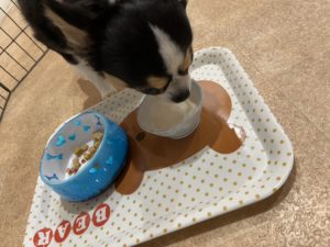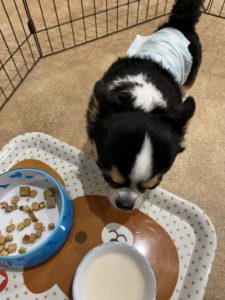 ご飯の時間のお写真です✨ やまとくん準備中はしっぽをブンブン振って待っていました💕 牛乳を美味しそうに食べてくれていました🤩
