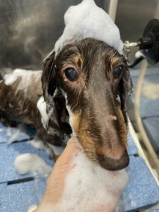 ダックスフンドのタルトくんです☆ シャンプーコース+ロハスリノシャンプーをご利用頂きました✂