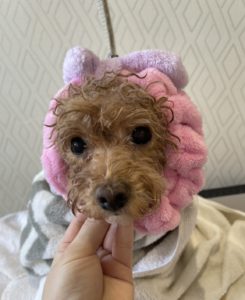トイプードルのモコちゃんです♡ トリミングコース+セラミドパックをご利用頂きました✂