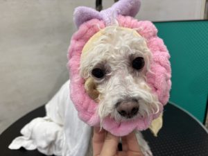トリミングコース+セラミドパック+ホワイトシャンプーをご利用頂きました✂