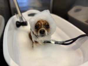シャンプーコース+ヒゲカット+ハミガキ+ティーツリーシャンプー+セラミドパック+肉球ケアをご利用頂きました✂