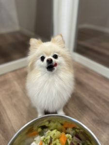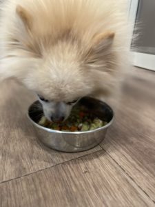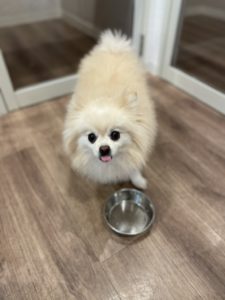 朝日を浴びながら元気に歩いてくれました🐕 ご飯の時間です🍚